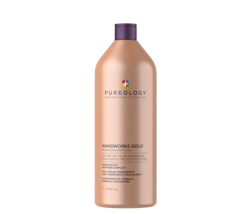 1000MLRevive, renew, relax for 4x smoother strands*. The gold standard of transformative treatments. Revive the most mature hair at your ends back to a golden state with our most indulgent shampoo that instantly renews softness and shine. A rich and decadent formula that transforms every single strand and takes dull hair back to having sunny shine. Full of powerful antioxidants, Golden Marula Oil keeps hair soft, supple and moisturized while the protein Keravis gives hair super strength. A softly sweet blend of Dewey Pear and Ylang Ylang gets mixed with a warm touch of Golden Amber for a luxurious scent. Restores hair's youthful state. The formula is sulfate-free to allow for a gentle cleanse. Pureology products are made with vegan formulas without animal derived products or by-products**